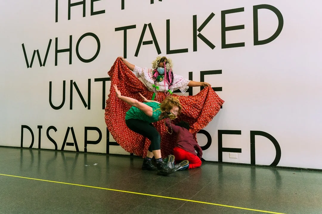 Our events are improvisational performance environments which interrogate movement and sound. We use an ensemble of movers and sound-makers that are remarkably diverse in their crafts and backgrounds.